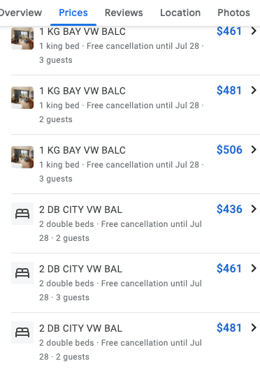 Remarque : Les offres de chambres sans images sont remplacées par une image de lit.