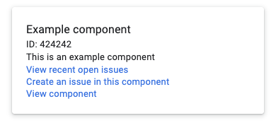 구성요소는 Google Issue Tracker의 문제를 위한 컨테이너입니다. 구성요소는 프로젝트, 하위 프로젝트 또는 기타 기능적 또는 조직적 문제 그룹에 해당할 수 있습니다.