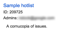 Vous pouvez ajouter un problème à plusieurs listes. Les listes de surveillance s'affichent dans des encadrés bleus à côté du titre du problème sur la page du problème. Si l'option Afficher les listes de favoris est activée pour la colonne Titre d'une page de résultats de recherche, les listes de favoris apparaissent également dans les résultats de recherche sous forme de cases bleues. Si vous disposez de l'autorisation Afficher et ajouter ou Administrateur pour une liste de problèmes, vous pouvez supprimer un problème de la liste en cliquant sur le X associé à la case bleue.