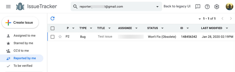 문제를 검색하면 Google Issue Tracker에서 검색 기준과 일치하는 맞춤설정 및 저장이 가능한 문제 표를 반환합니다. 이 표를 사용하면 문제 입력란이 포함된 열을 추가, 삭제, 재정렬하여 확인하려는 정보를 선택하고 강조 표시할 수 있습니다. 검색 결과 보기를 사용하면 문제를 일괄 수정할 수도 있습니다.