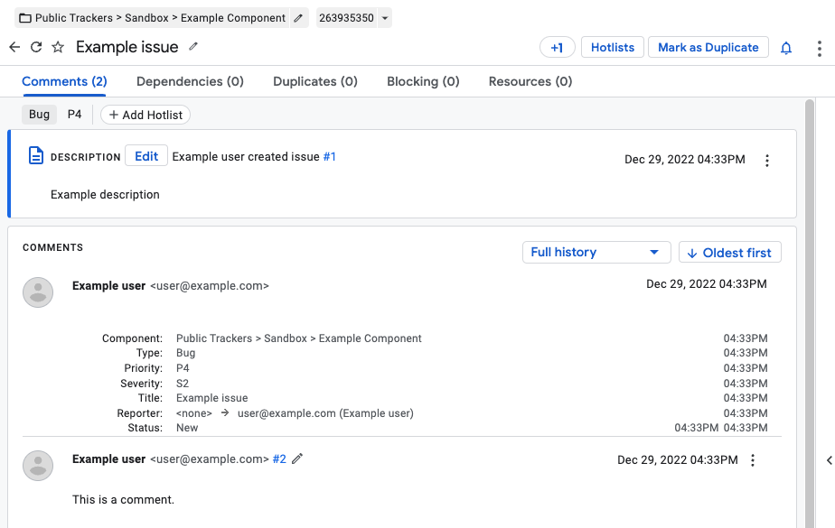 На этой странице показано, как просмотреть и изменить проблему в Google Issue Tracker.