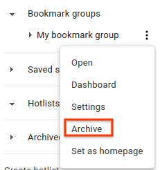 Archived bookmark group "My bookmark group".북마크 그룹이 보관처리되면 그룹의 모든 사용자에게 보관처리됩니다.
