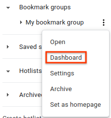 북마크 그룹 대시보드에서 이름 옆에 있는 아이콘을 클릭하여 북마크 그룹의 별표표시를 해제할 수도 있습니다.