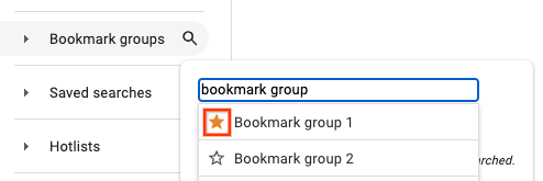 왼쪽 탐색 메뉴의 북마크 그룹 섹션에 북마크 그룹을 추가하려면 북마크 그룹 검색 결과 옆에 있는 별표 아이콘을 클릭합니다.