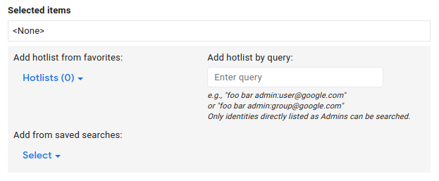 핫리스트 및 저장된 검색어를 추가 및 삭제하려면 북마크 그룹에 대한 관리자 권한이 있어야 합니다.