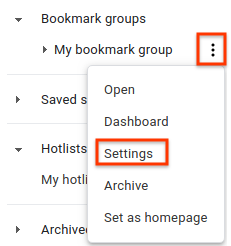 북마크 그룹 이름 위로 마우스를 가져간 다음 '더보기' 아이콘을 클릭합니다.