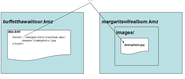 Nếu muốn tham chiếu đến một tệp nằm trong một tệp ⌘ khác (ví dụ: đến images/jimmyphoto.jpg có trong margaritavillealbum.SRC, bạn sẽ sử dụng ký hiệu ".." để đi lên một cấp trong cấu trúc thư mục. Tệp này sẽ đưa bạn ra khỏi tệp MRSS hiện tại (buffetthawaiitour.SRC):
