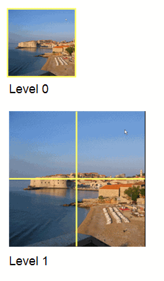 - 細分為資訊方塊。這個層級的圖片是由 2 個 * 2 個圖塊 (第 1 層) 組成。