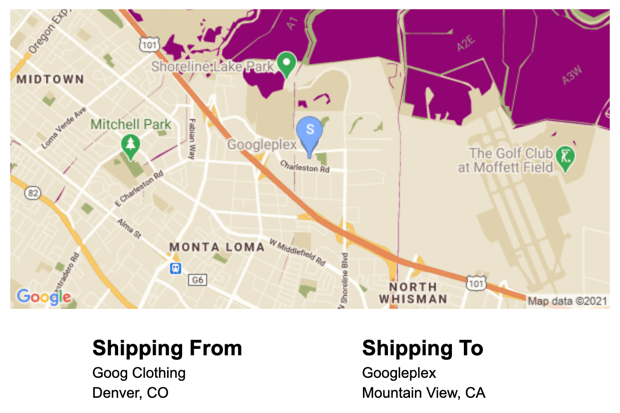 주소 입력 후 간단한 정적 지도를 통해 사용자가 배달 또는 수령 위치를 시각적으로 확인할 수 있게 합니다. 그러면 고객은 주소가 올바른지를 한 번 더 확인할 수 있고 배달/수령 오류를 줄일 수 있습니다. 이 정적 지도는 고객이 주소를 입력하는 페이지에 표시할 수도 있고, 주문 확인 이메일을 통해 전송할 수도 있습니다.