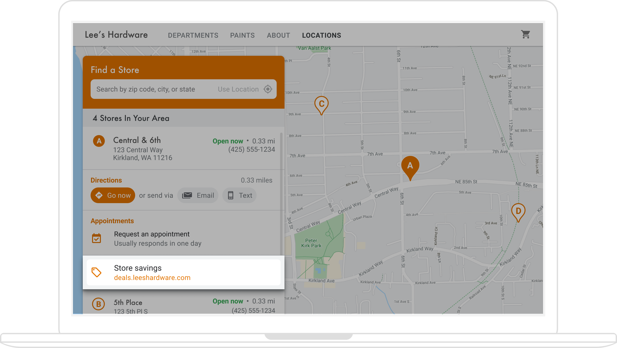लोकेटर, उपयोगकर्ता अनुभव का एक अहम हिस्सा है. हालांकि, कुछ साइटों पर एक साधारण मैप भी नहीं होता. ऐसे में, आस-पास की जगह ढूंढने के लिए, उपयोगकर्ताओं को साइट या ऐप्लिकेशन से बाहर जाना पड़ता है. इसका मतलब है कि जिन उपयोगकर्ताओं को ज़रूरी जानकारी पाने के लिए, एक से दूसरे पेज पर जाना पड़ता है उनके लिए यह अनुभव अच्छा नहीं है. इसके बजाय, अपने ऐप्लिकेशन में मैप को जोड़कर और उन्हें पसंद के मुताबिक बनाकर, इस अनुभव को बेहतर बनाया जा सकता है.