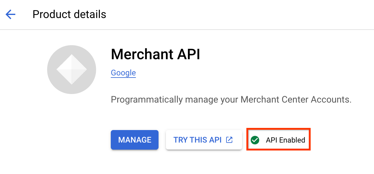 • 如需为 Google Cloud 项目启用 Merchant API,您必须拥有管理员角色 (roles/admin)。如果您拥有必要的权限,请执行以下操作: