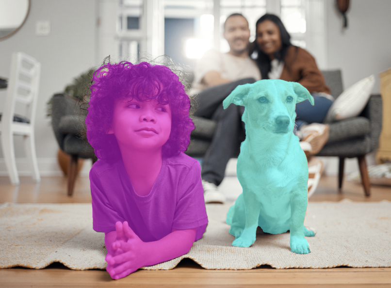API การแบ่งกลุ่มหัวเรื่องจะถ่ายภาพอินพุตและสร้างมาสก์เอาต์พุตหรือบิตแมปสำหรับพื้นหน้า และยังมีมาสก์และบิตแมปสำหรับวัตถุแต่ละรายการที่ตรวจพบ (พื้นหน้าเท่ากับทุกวิชารวมกัน)