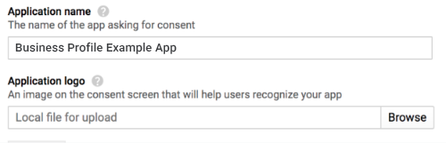 На изображении ниже показаны поля Application name (Название приложения) и Application logo (Логотип приложения) окна запроса доступа OAuth: