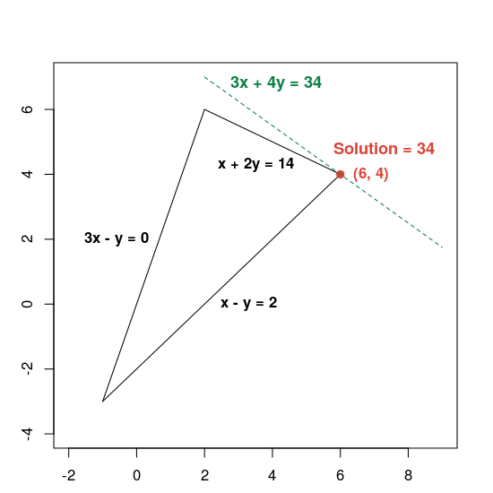 # Objective function: 3x + 4y. solver.Maximize(3 * x + 4 * y)