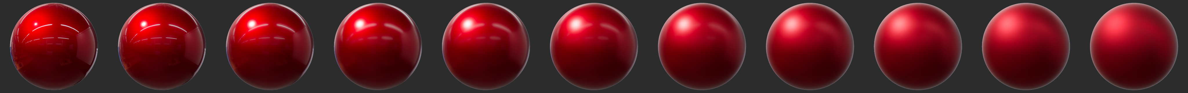 ধাতব পৃষ্ঠের উপর roughness প্রভাব নীচে দেখানো হয়েছে (একটি বড় সংস্করণ দেখতে ছবিতে ক্লিক করুন)।