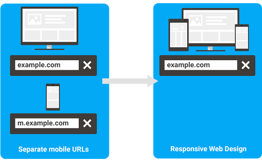 Com mais sites migrando para o Web design responsivo, muitos webmasters têm dúvidas sobre a migração dos URLs para dispositivos móveis separados , também conhecidos com frequência como "m-dot URLs", para usar Web design responsivo. Veja algumas recomendações sobre como fazer a mudança dos URLs separados para um URL responsivo a fim de melhorar o desempenho dos seus sites nos resultados da pesquisa do Google.
