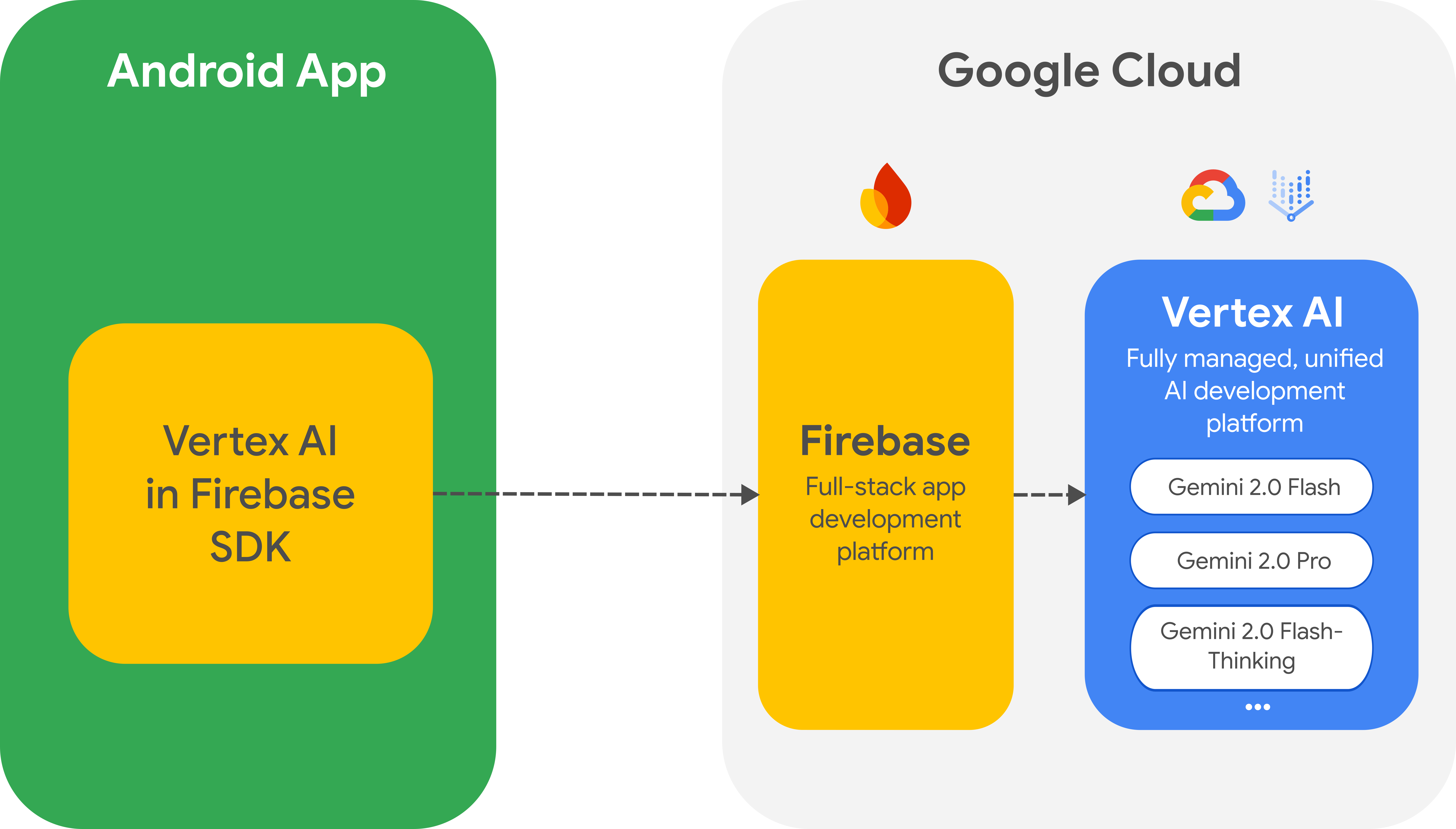 作为 Android 开发者,您可以使用 Firebase 中的 Vertex AI 在 Android 应用中快速实现生成式 AI 功能,具体方法是使用 Gemini Pro 和 Flash 模型处理文本生成任务,使用 Imagen 处理图片生成任务。