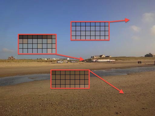 Kompresi WebP lossless menggunakan fragmen gambar yang telah dilihat untuk merekonstruksi piksel baru. Alat ini juga dapat menggunakan palet lokal jika tidak ada kecocokan yang menarik. Palet ini terus diperbarui untuk menggunakan kembali warna terbaru. Pada gambar di bawah, Anda dapat melihat cache warna lokal yang sedang diupdate secara progresif dengan 32 warna yang baru-baru ini digunakan saat pemindaian berjalan ke bawah.