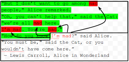 Diagram di bawah mengilustrasikan LZ77 (varian 2D) dengan pencocokan kata (bukan piksel).