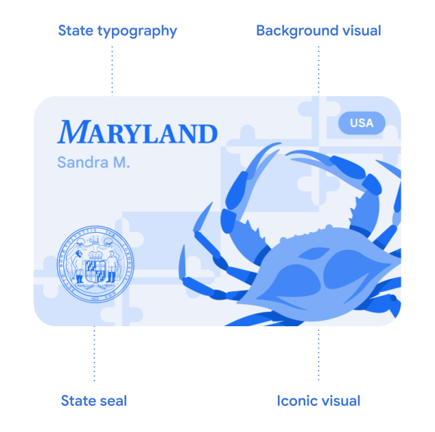 Google 钱包中的数字凭证卡包含 5 个独特的组成部分: