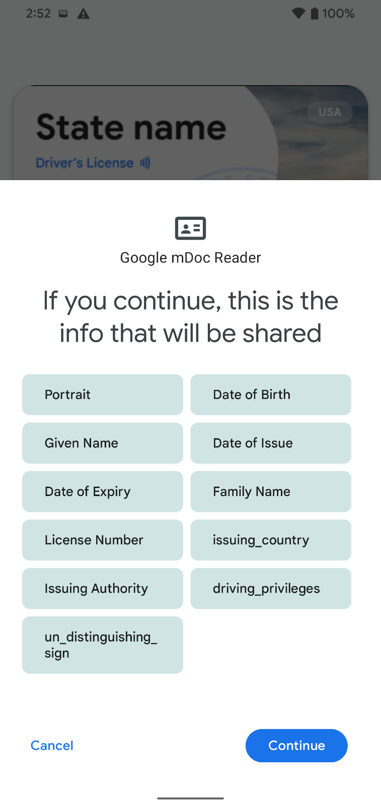 - Once you unlock, a consent screen will appear, showing you the information the terminal is requesting.